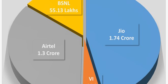 As per TRAI data, nationally, Jio added over 24 lakh new wireless subscribers, 1.79 lakh new wireline subscribers and over 5.85 lakh new FWA (JioAirFiber) subscribers in the month of January.
