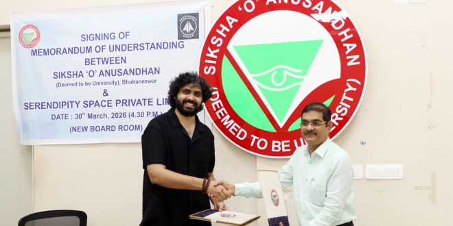 Bhubaneswar: Siksha ‘O’ Anusandhan Deemed to be University on Monday signed a Memorandum of Understanding (MoU) with Serendipity Space Private Ltd, a Bhubaneswar-based Start-up which is engaged in development of space-enabled technologies and platforms including modules for pharmaceutical crystallization, clinostat-based microgravity simulation and orbital crystallization missions in space.